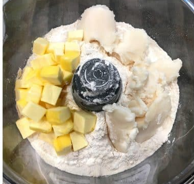 - 312 g very cold butter, diced into cubes (put in the freezer for 5-10 minutes after cubing it to ensure it’s very cold)