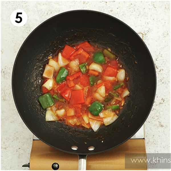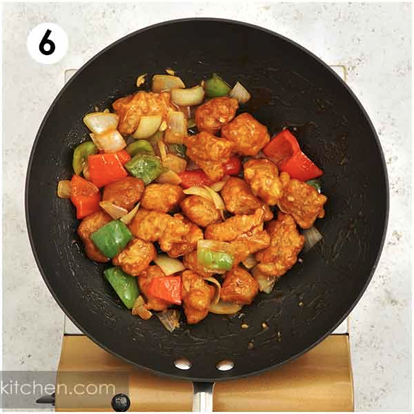 Pour the sauce in and cook until the sauce starts to get thickened and glossy.